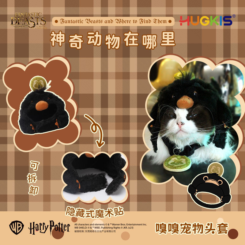 神奇动物在哪里正版嗅嗅宠物毛绒头套超萌金币宠物围兜猫咪装饰件