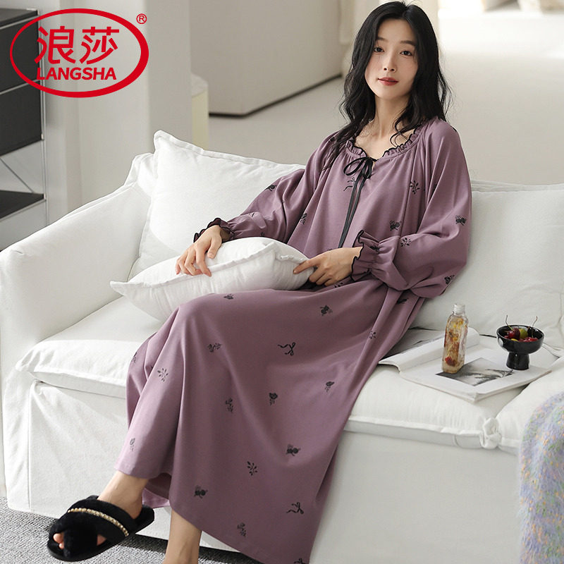 浪莎睡衣女款纯棉2025年新款春秋季长袖加大码宽松连衣裙孕妇睡裙