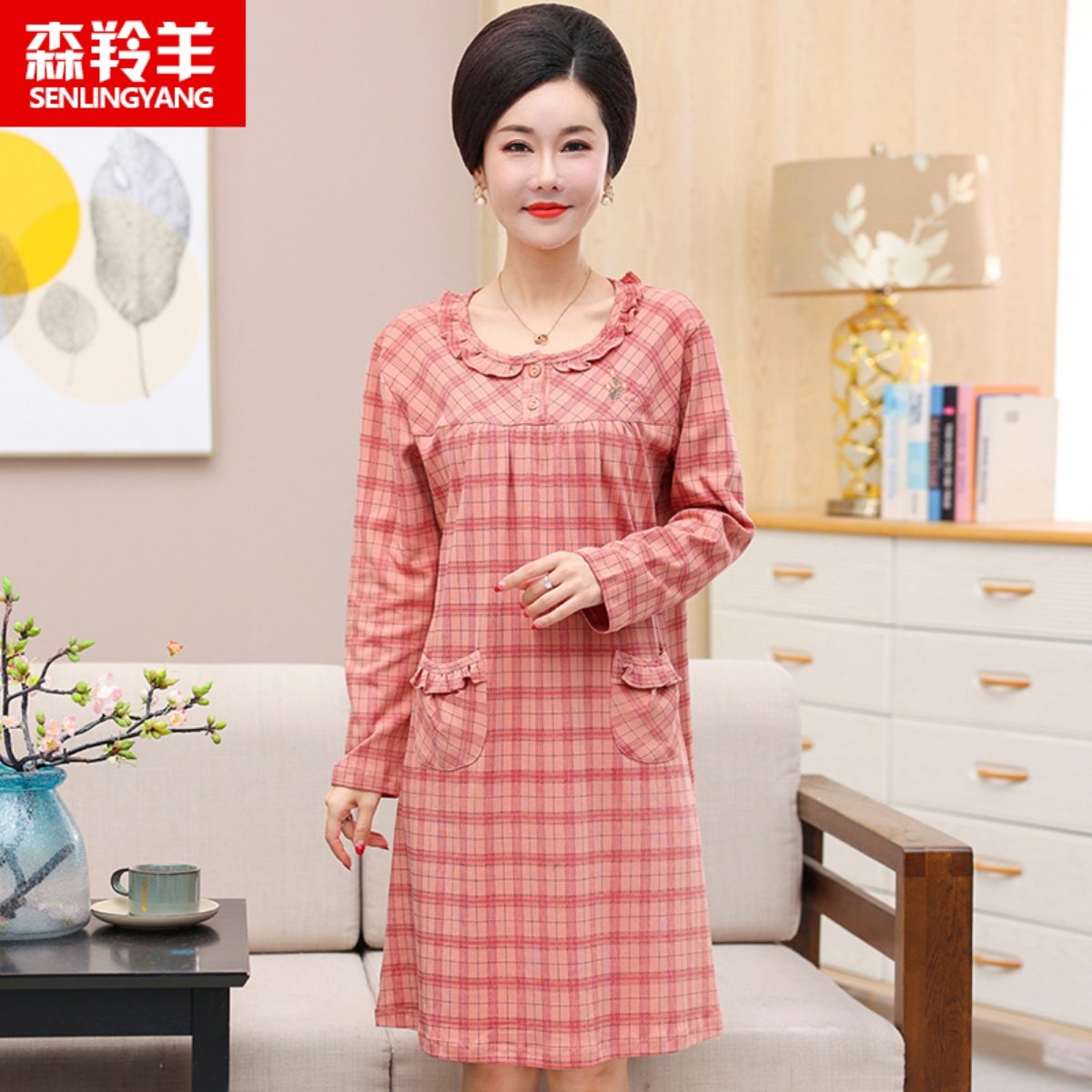 睡衣裙子女款春秋季长袖纯棉中年妈妈加大码女士睡裙可外穿连衣裙