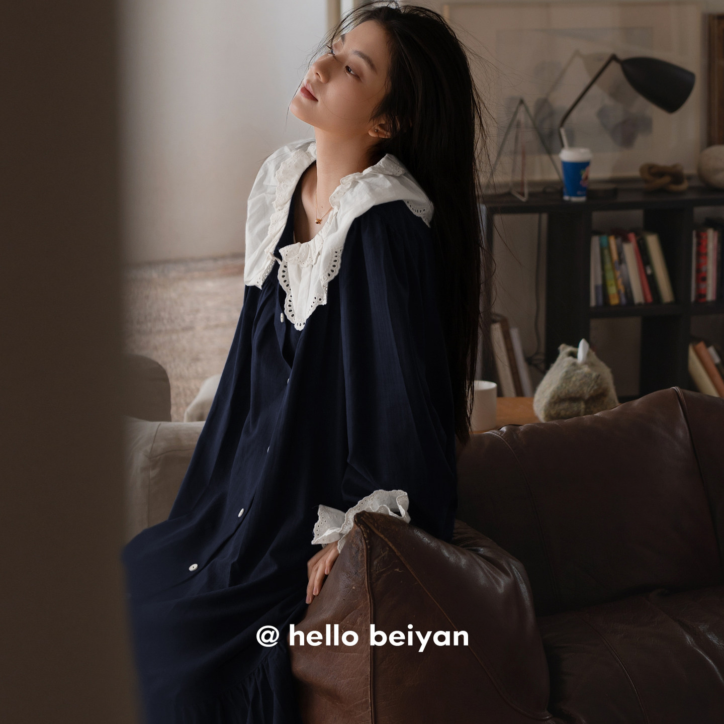 贝妍柔软莫代尔棉睡衣女款春秋季长袖大码睡裙甜美少女法式连衣裙
