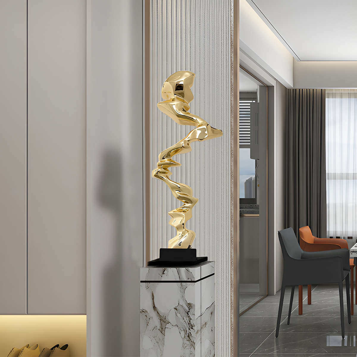 现代轻奢酒店大堂摆件样板间客厅入户玄关抽象树脂电镀雕塑艺术品