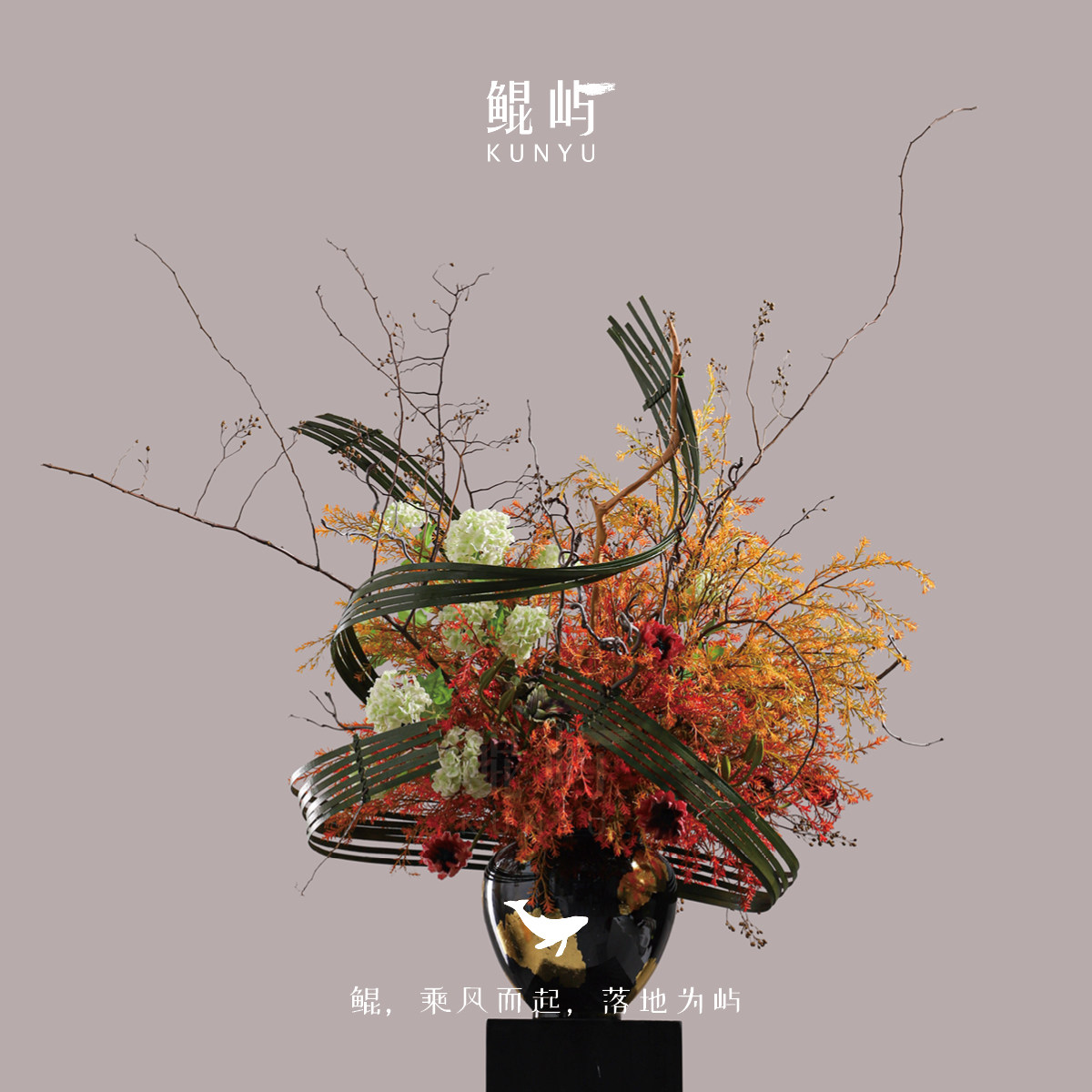 鲲屿 新中式圆桌大型仿真花艺美陈【日暮斜枝】室内酒店大堂摆件