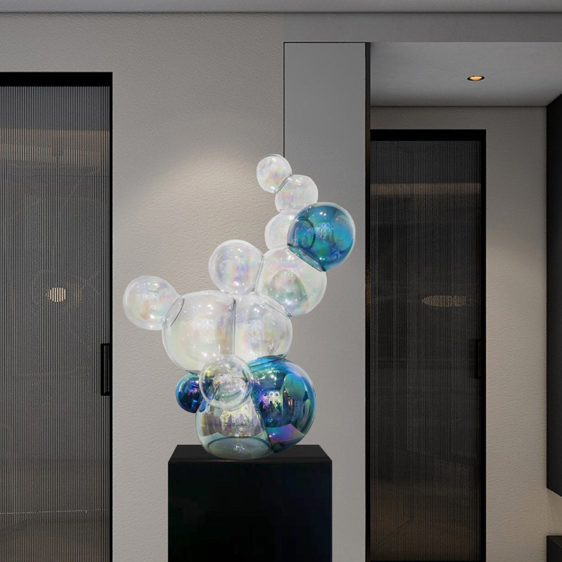 酒店大堂摆件简约现代透明炫彩玻璃球餐厅商业中心艺术雕塑装饰品
