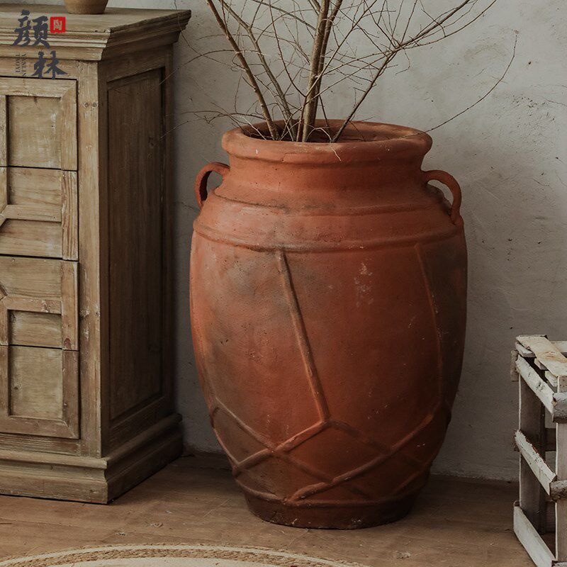 景观双耳大陶罐粗陶花盆复古落地陶瓶民宿装饰陶器酒店大堂摆件大