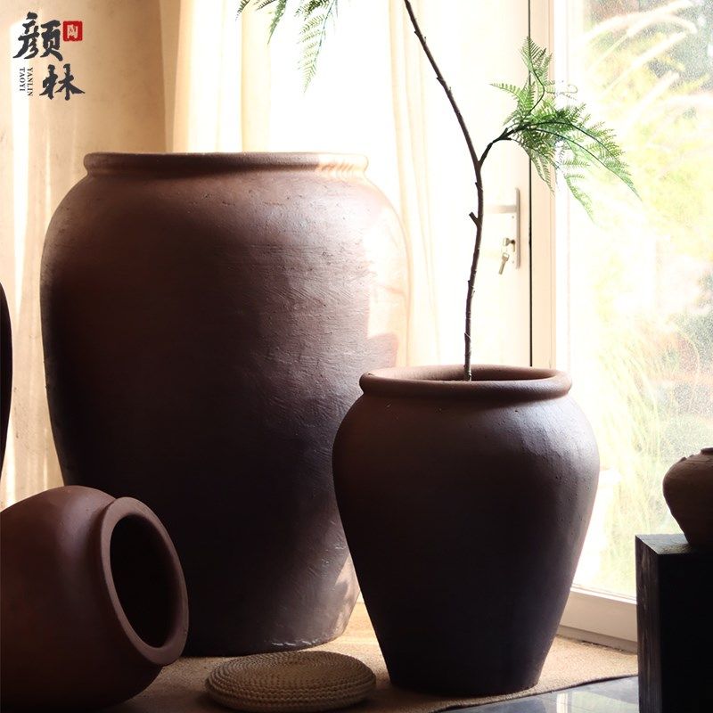 1.2米超大落地翁缸复古侘寂粗陶大陶罐民宿装饰陶器酒店大堂摆件