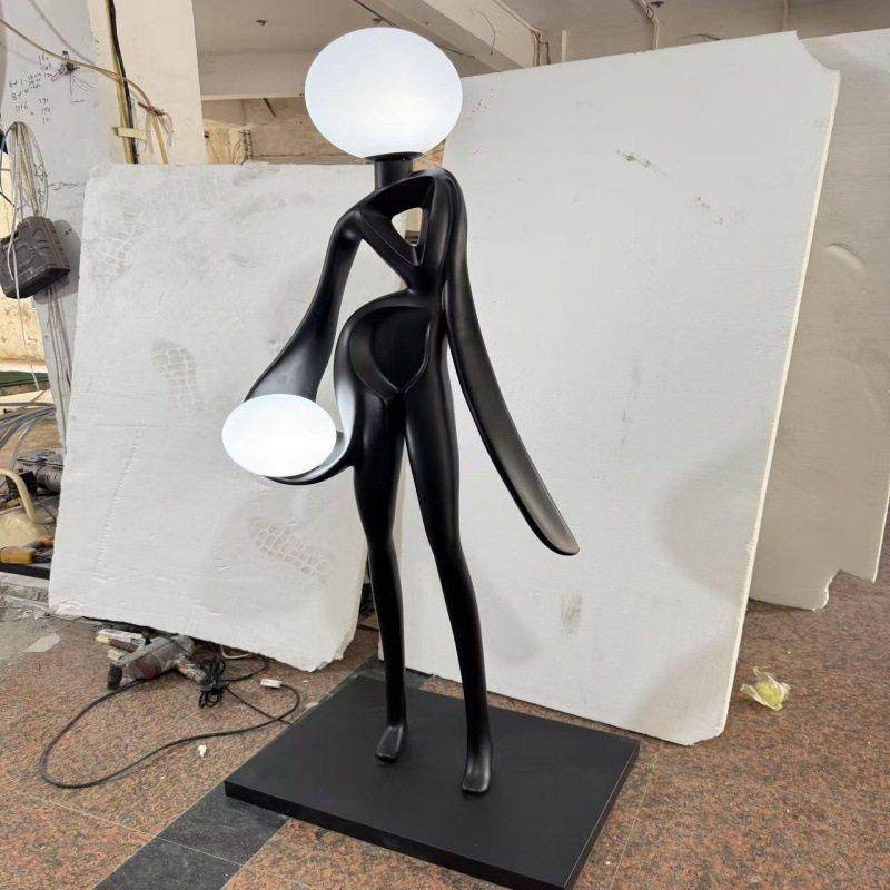 新款迎宾人物后现代落地灯人体雕塑带灯创意展厅艺术酒店大堂摆件