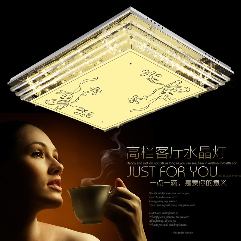 长方形水晶灯LED吸顶灯豪华客厅卧室餐厅灯现代简约三色遥控灯具