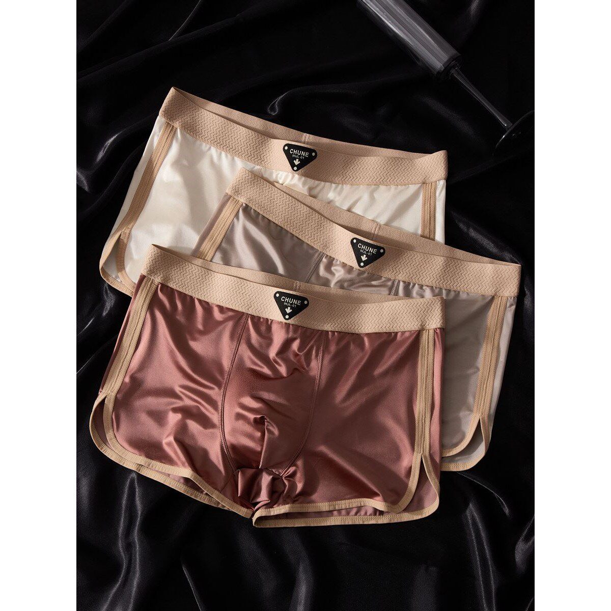 高级轻奢缎面冰丝男士内裤薄款透气舒适平角裤夏季青年潮流短裤头