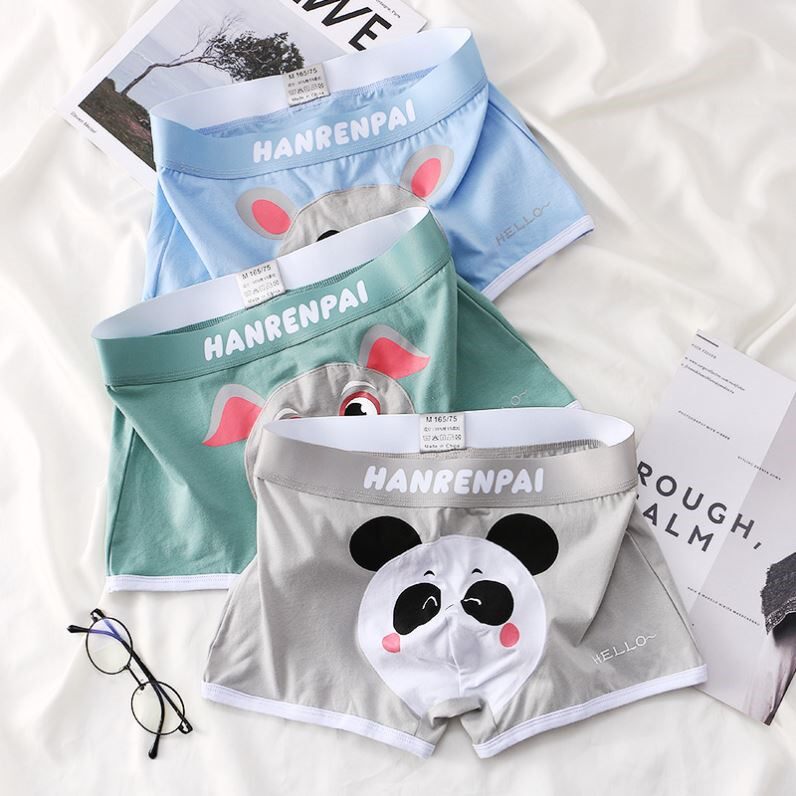 男士内裤男生四角平角短裤棉可爱卡通男款透气印花送男友大码宽松