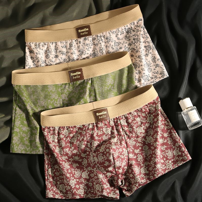 国风男士内裤男纯棉四角裤秋冬透气青少年男生中腰运动平角裤头潮