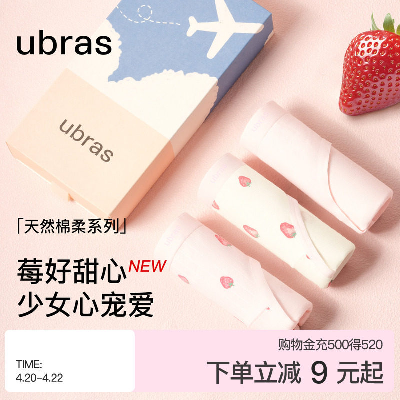 ubras纯棉印花内裤女15A蔓越莓抗菌透气裆可爱中腰少女学生三角裤