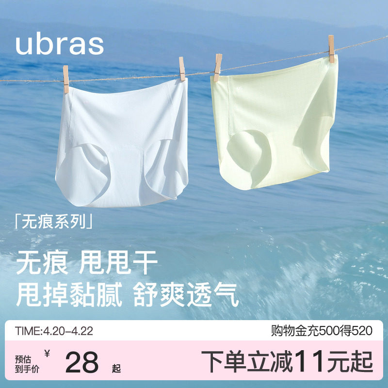 ubras无痕甩甩干内裤女透气薄款隐形中腰加长裆运动速干三角短裤