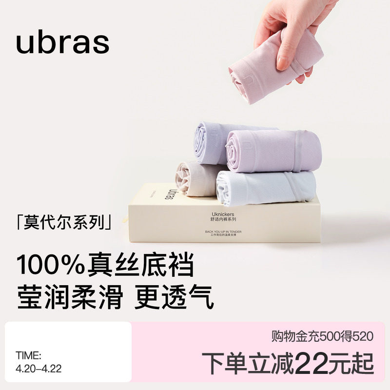 ubras莫代尔桑蚕丝抗菌底裆内裤女透气亲肤柔软中腰女三角裤3条装