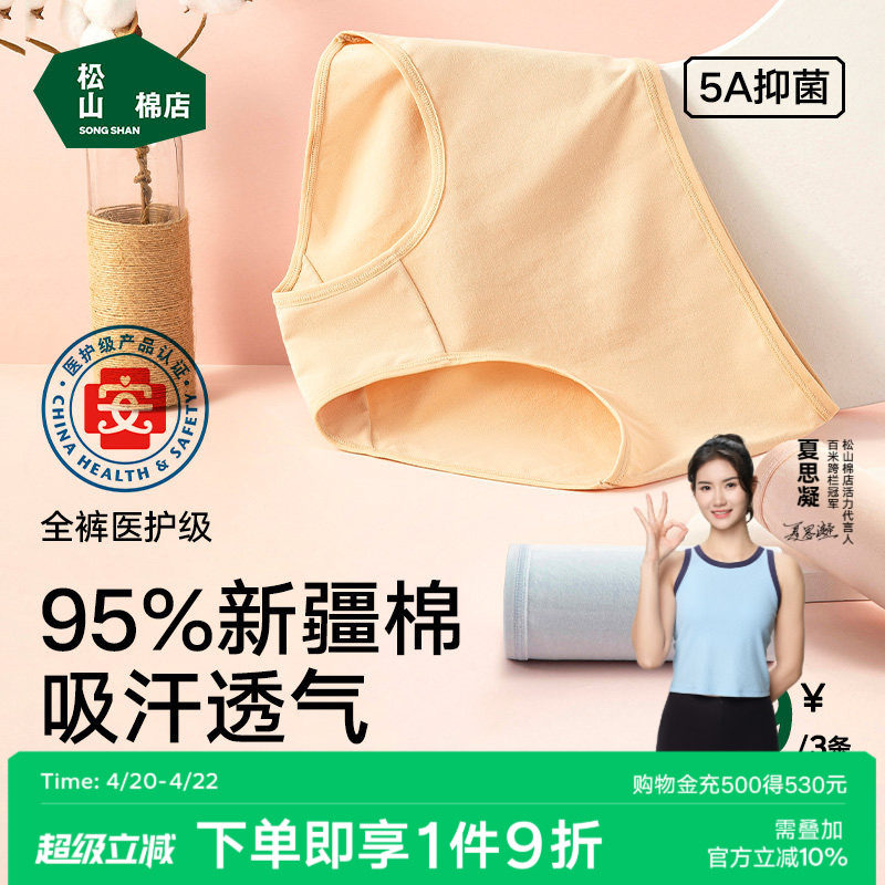 松山棉店女士纯棉中腰内裤加长裆裸睡透气不夹臀新疆棉女生三角裤