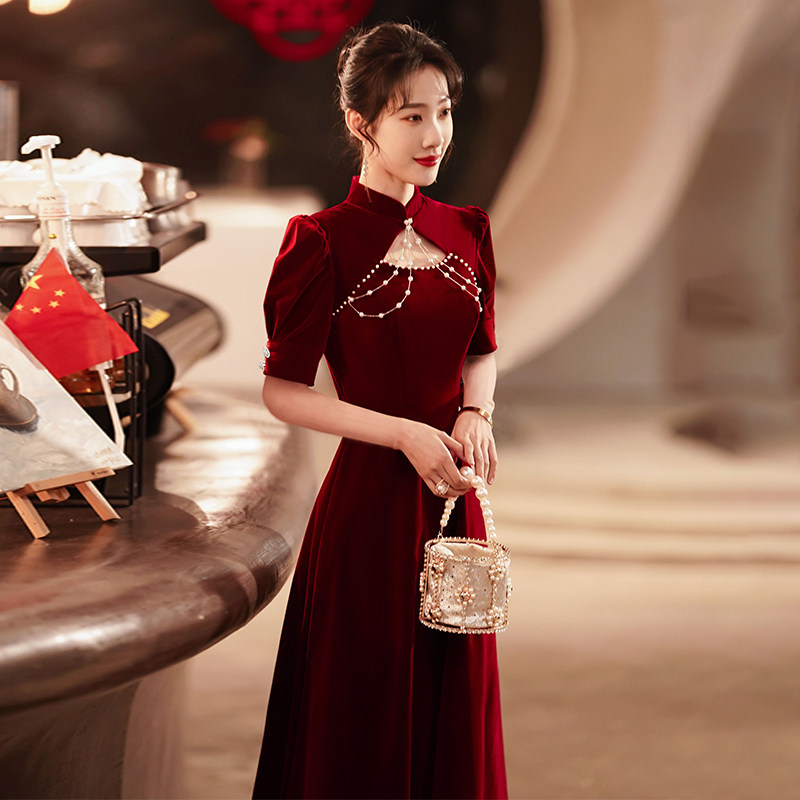 - 丝绒旗袍长款 高档