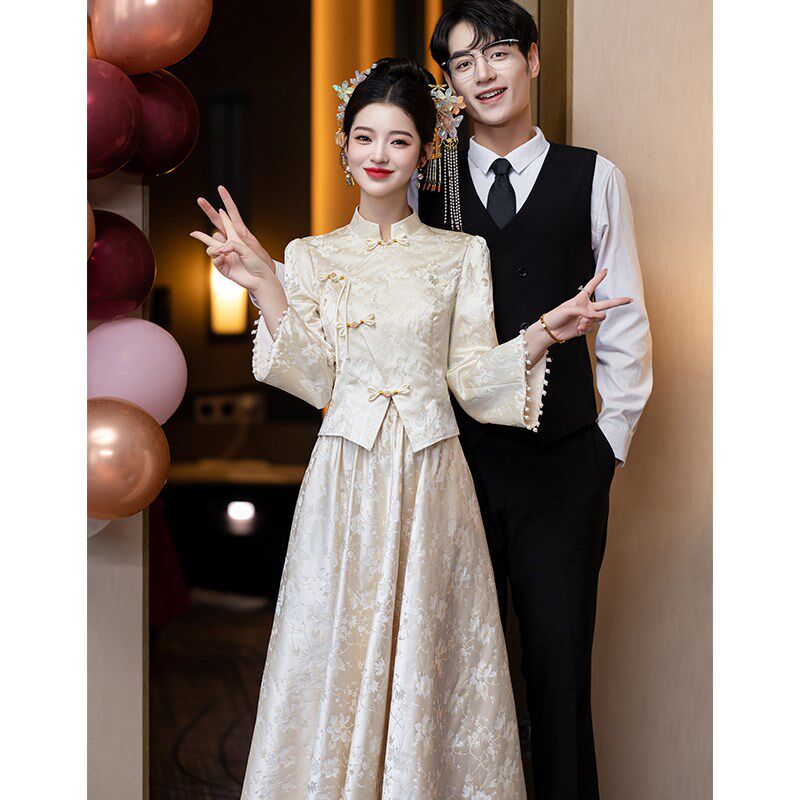 敬酒服旗袍2025款新娘轻奢大气高级感长袖订婚礼服裙女出阁宴结婚