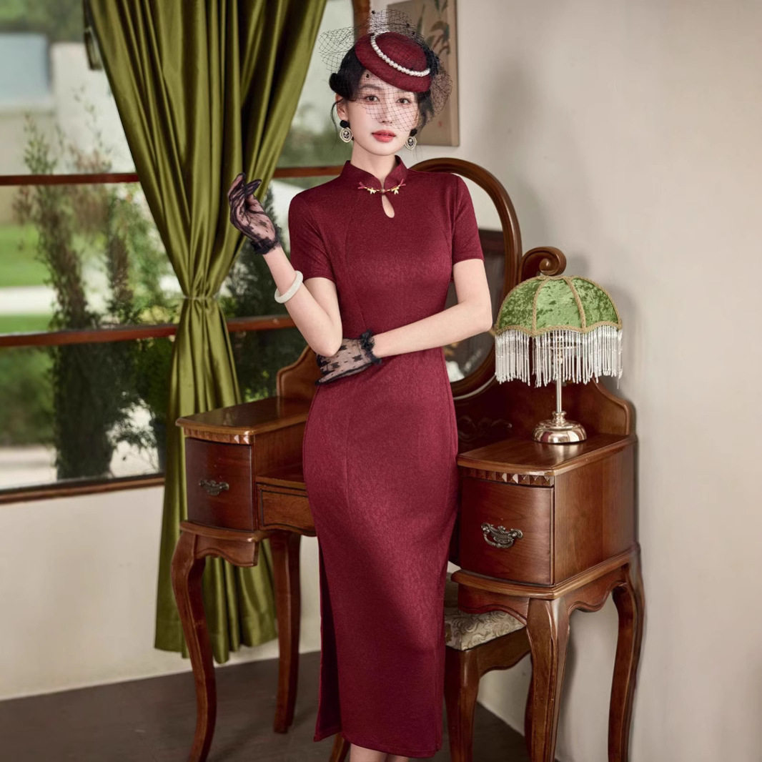 2025春夏新品红色复合提花长款旗袍文艺喜庆中国风订婚敬酒服旗袍