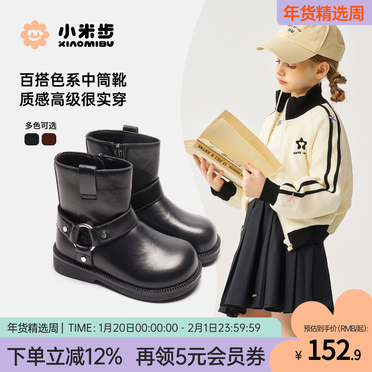 小米步女童靴子2025秋冬新款儿童马丁靴学生黑色皮靴时尚短靴大童