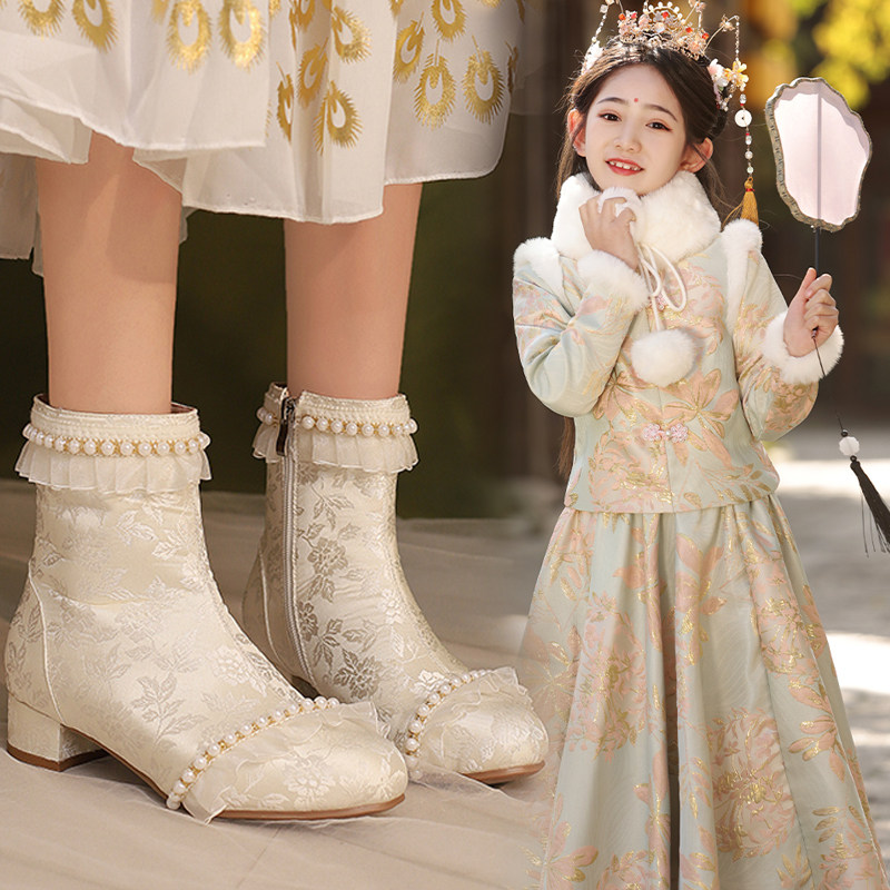 女童靴子秋冬儿童高跟鞋小女孩马丁靴配汉服旗袍中式演出学生短靴