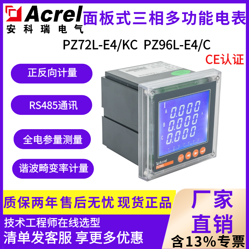安科瑞PZ96L-E4/KC多功能仪表液晶显示电能表 开孔88*88