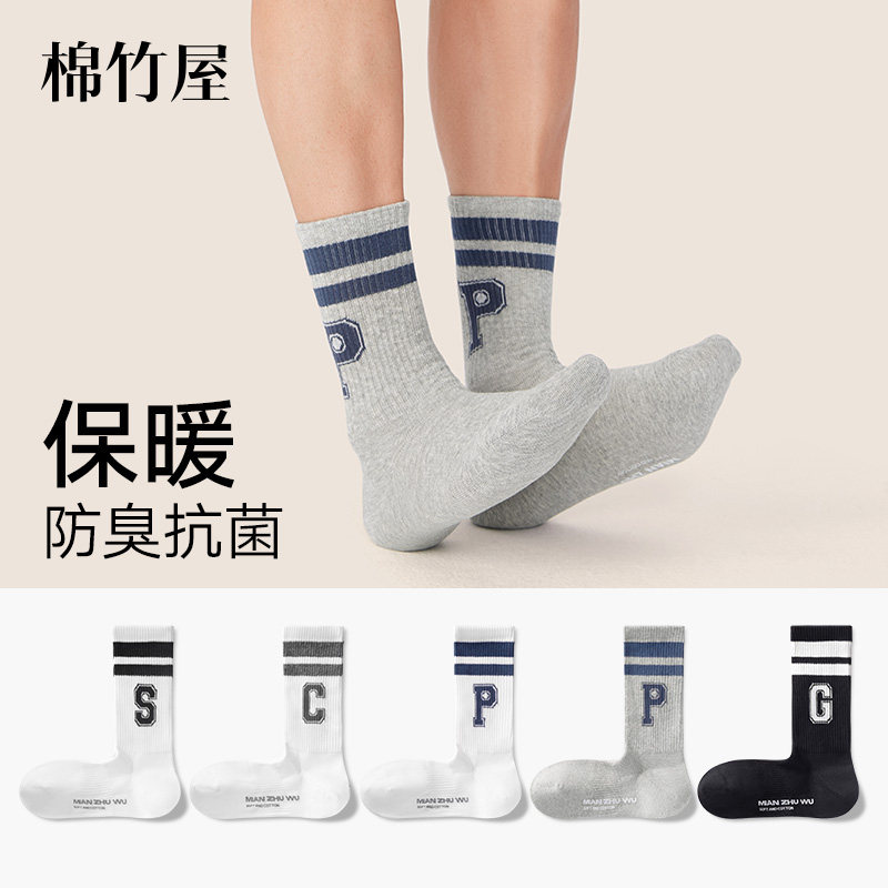 锦行记100%棉袜子男中筒袜秋冬纯棉抗菌防臭透气直角袜男袜运动袜