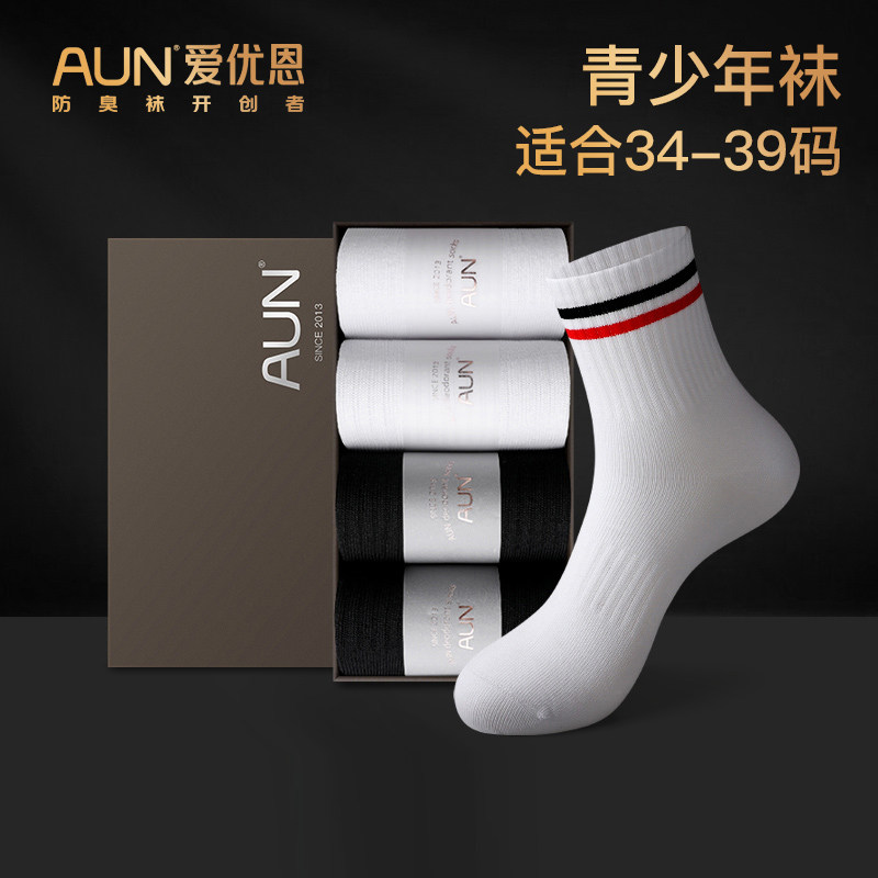 AUN青少年袜子男中筒袜银离子抗菌防臭袜学生运动休闲透气吸汗