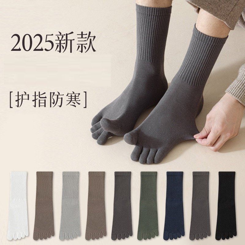 五指袜子男中筒袜分趾袜秋冬季厚款吸汗透气保暖长袜分趾运动棉袜