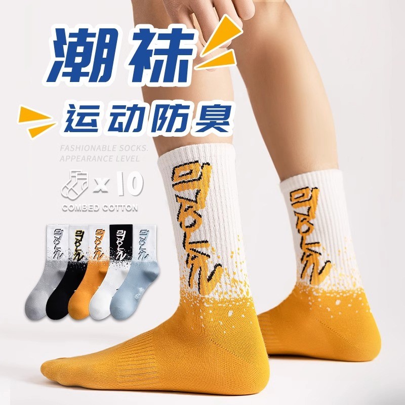 袜子男中筒袜防臭吸汗透气男士夏季ins潮短袜秋季青少年短筒棉袜