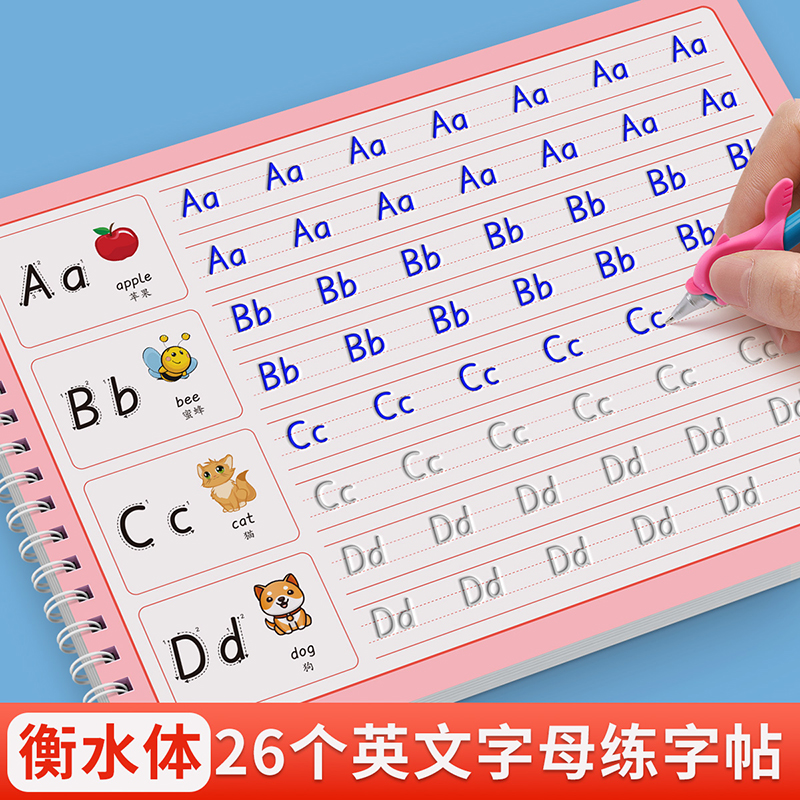 衡水体英语字帖26个英文字母练字帖凹槽练字本幼儿园大班中班学前班专用练习本幼小衔接初学者描红本人教版小学生一年级英语单词