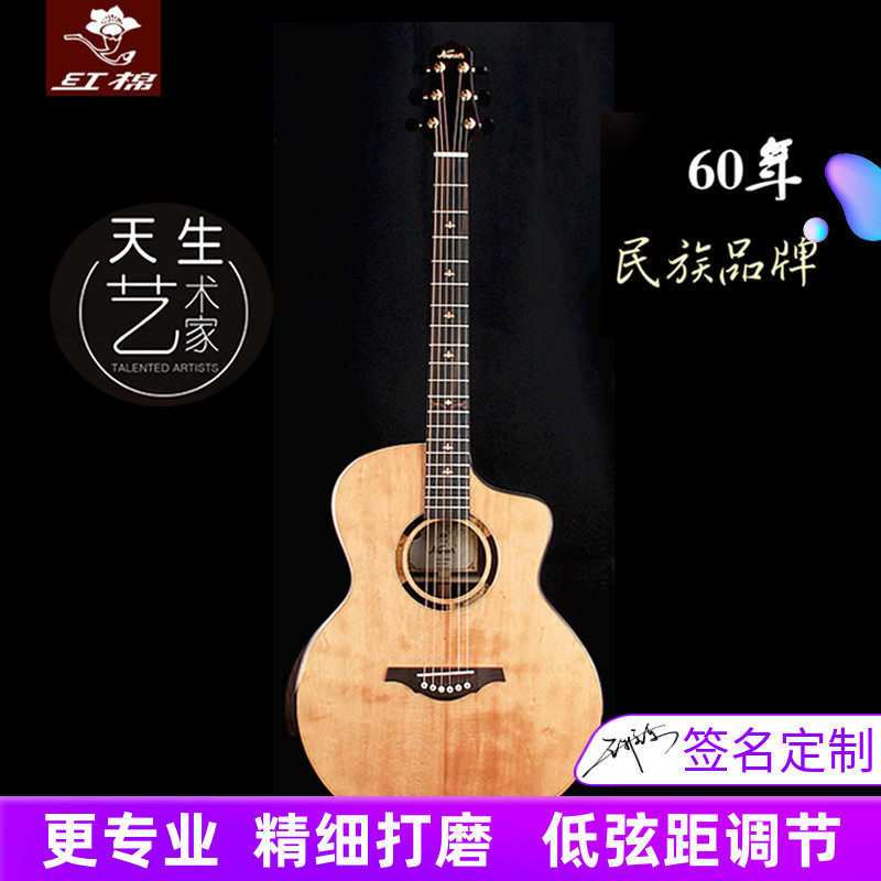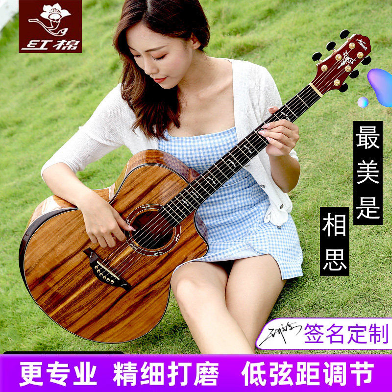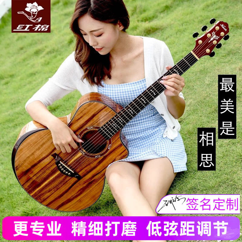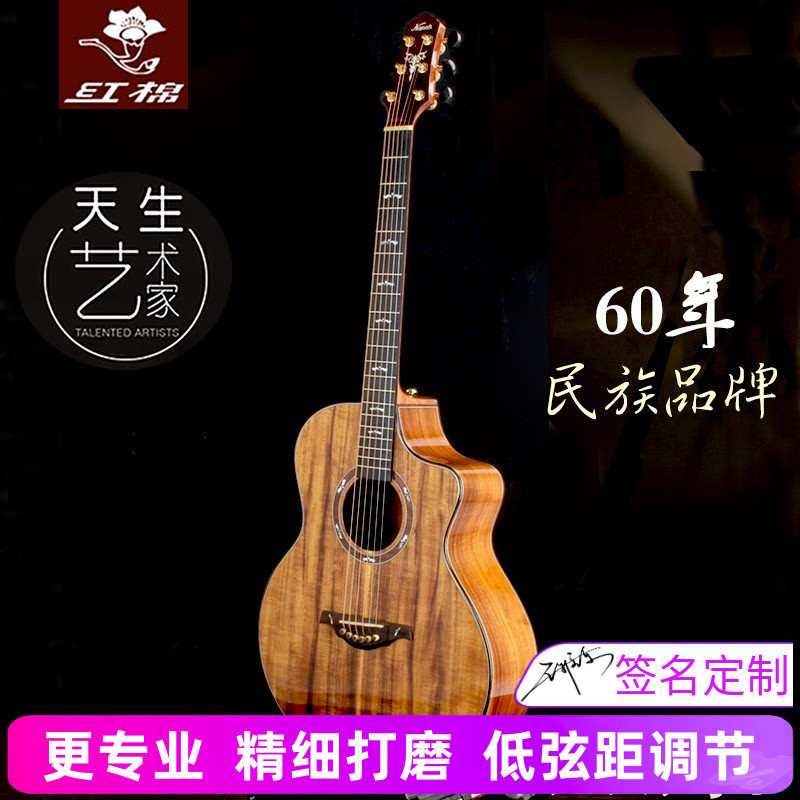 红棉手工加震全单吉他40 41寸演奏级36 38相思木全实单板电箱民谣