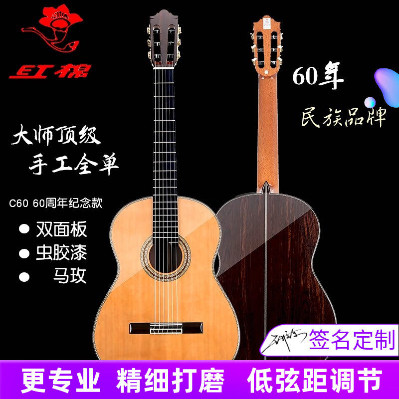 红棉手工60周年全单吉他C60纪念版加震电箱古典珍稀红松珍藏级