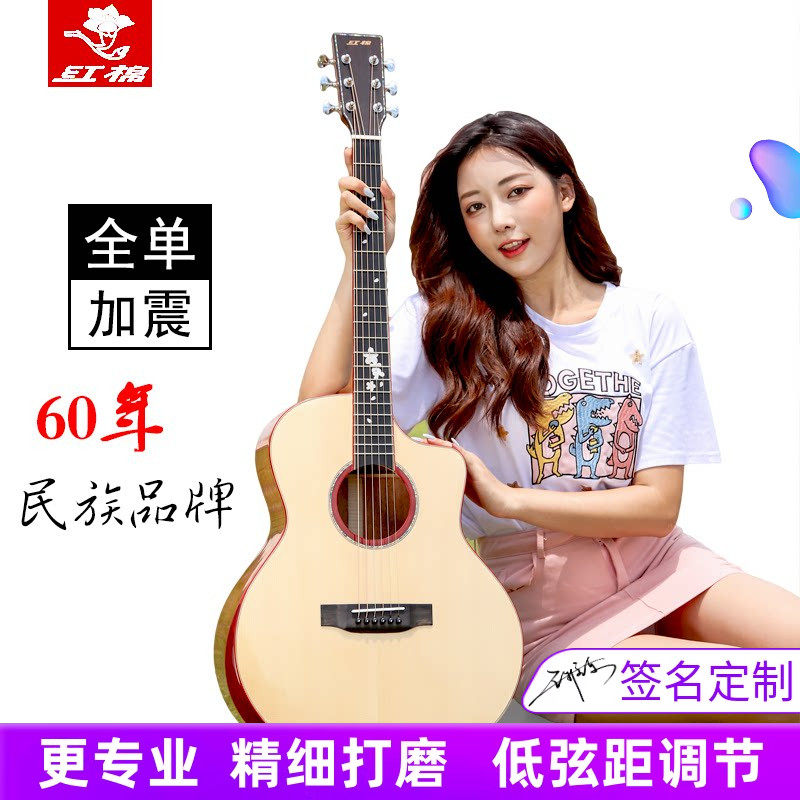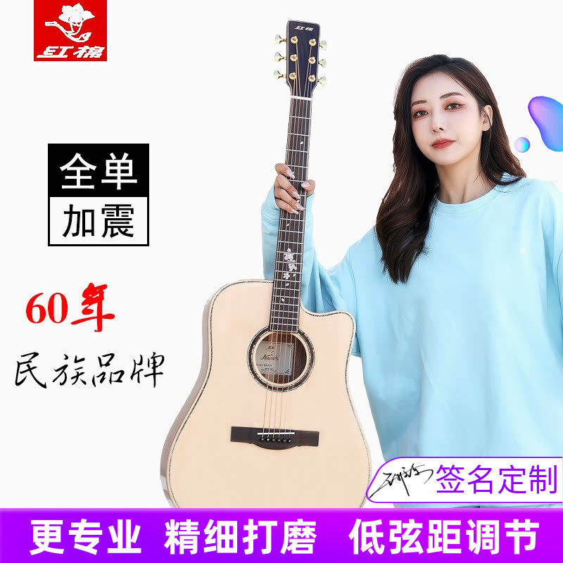 红棉手工加震全单吉他41 40寸民谣全实板36 38男女生左手考级电箱