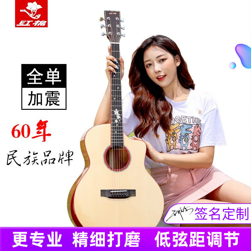 红棉手工加震全单吉他民谣41 40寸实木板36 38男女生左手考级电箱