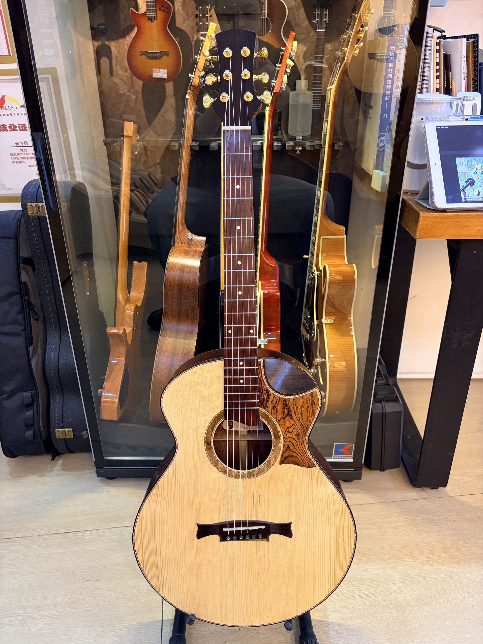 W手工吉他 收藏038 40寸爪纹欧杉 危地马拉玫瑰木手工全单 孤品