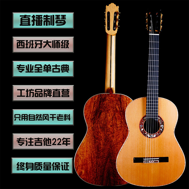 全单手工吉他西班牙式悬空抬升红松/瑞士云杉面板大果紫檀背侧定