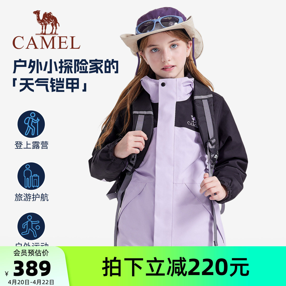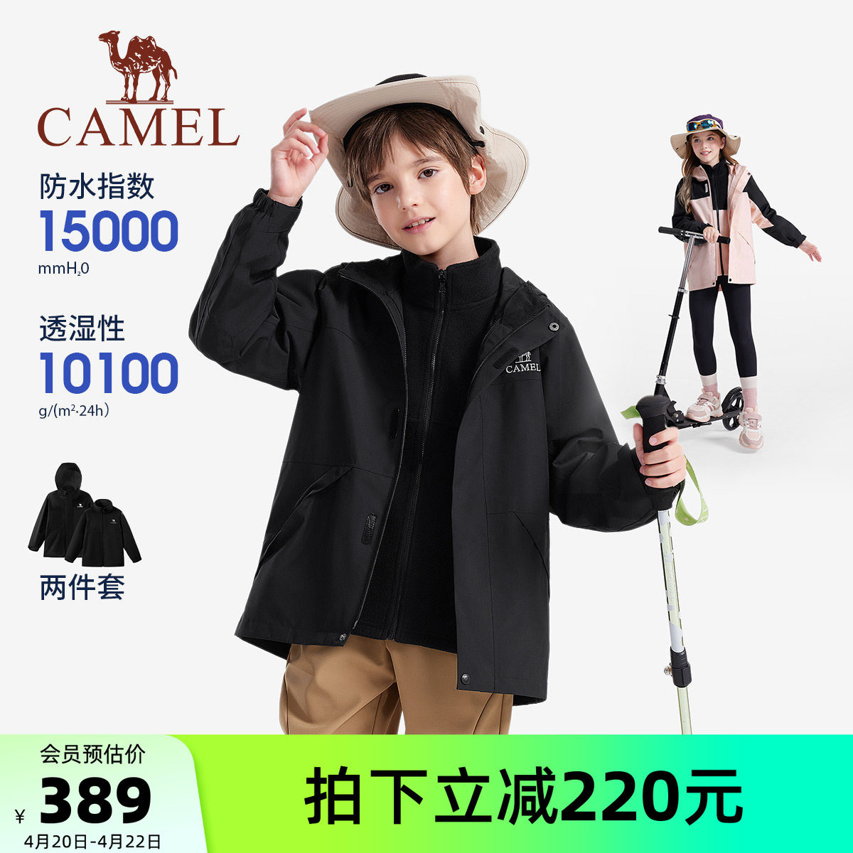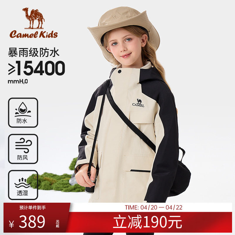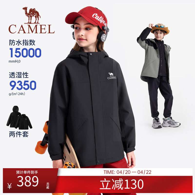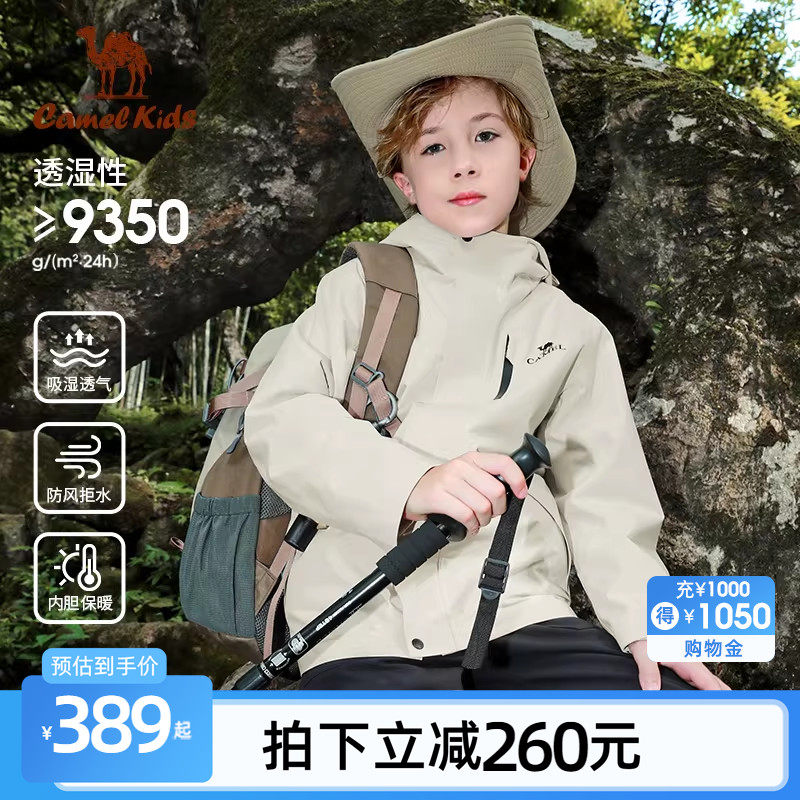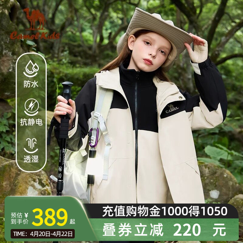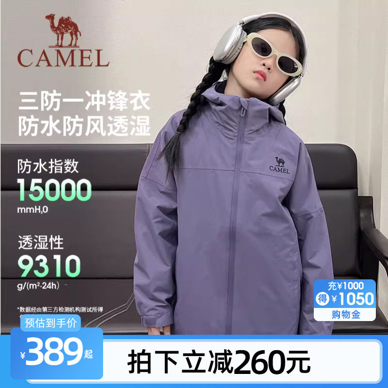 骆驼儿童冲锋衣三合一新款中大童户外防水风衣女童外套男童滑雪服