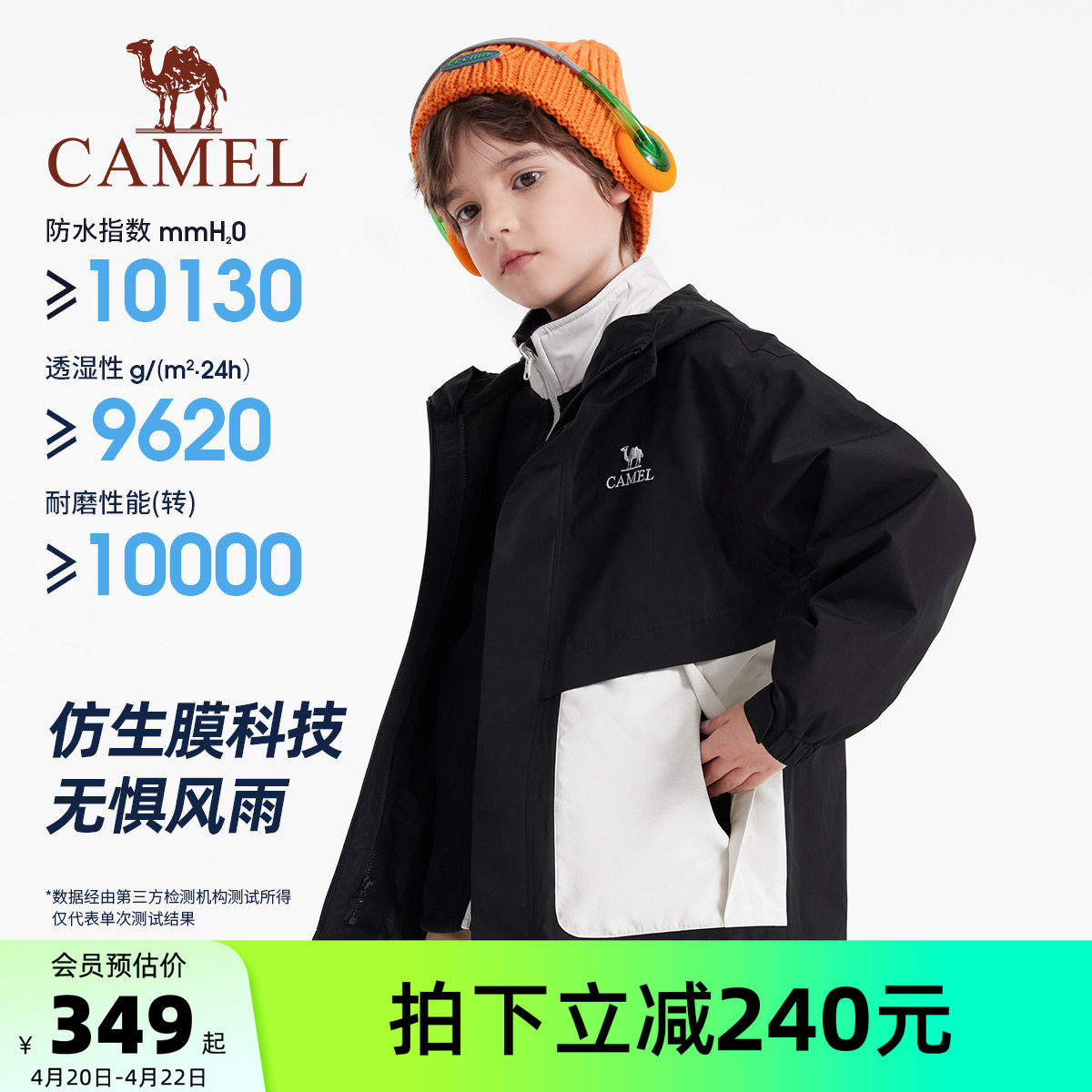 Camel骆驼儿童冲锋衣三合一防水中大童风衣外套滑雪服男女童