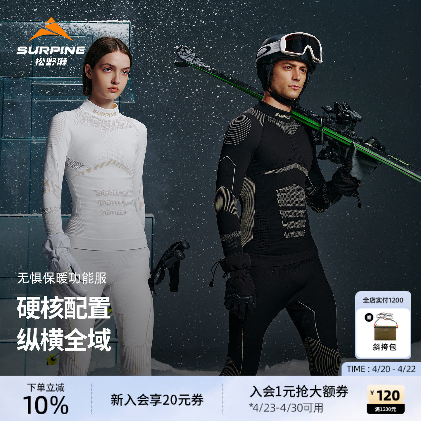 SURPINE松野湃无惧系列滑雪保暖内衣透气排汗速干衣套装男女