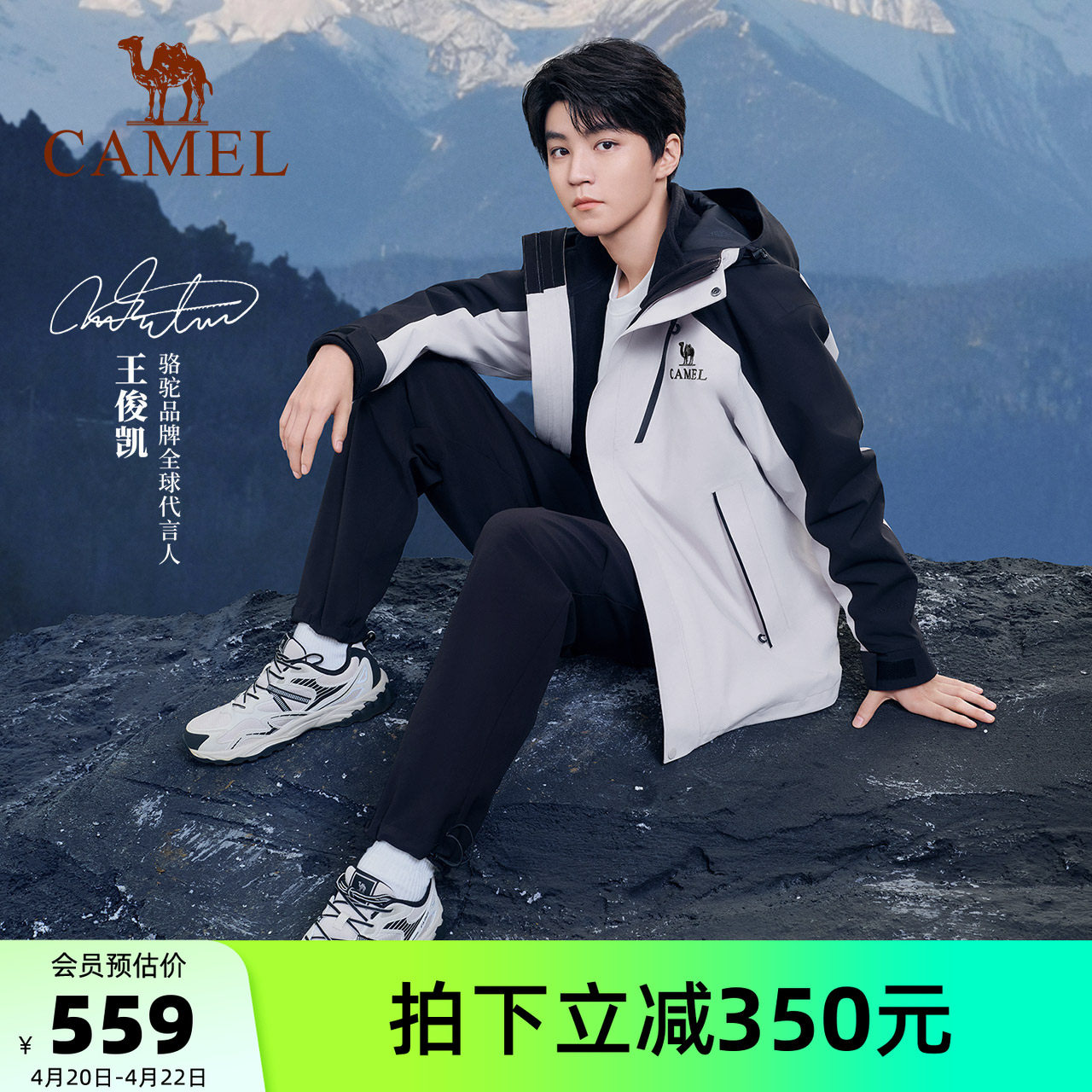 [王俊凯同款]骆驼户外王者凯甲滑雪服男三合一防水防风外套冲锋衣
