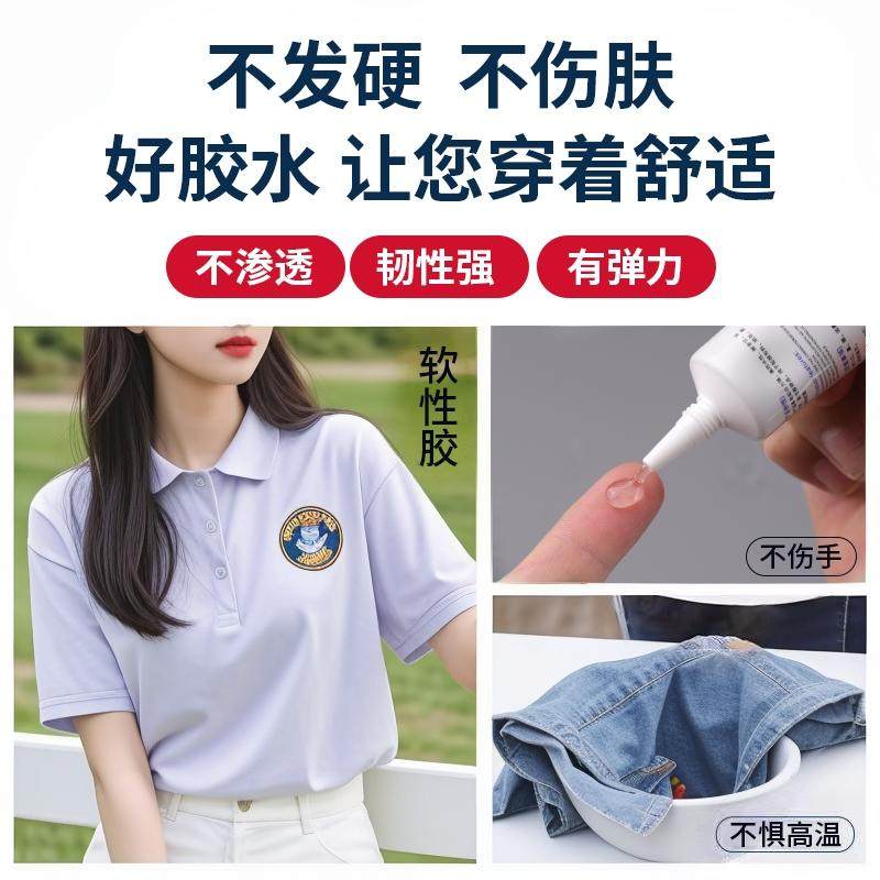 布艺胶粘布料logo防水无痕软胶强力贴图水洗专用持久胶水衣服