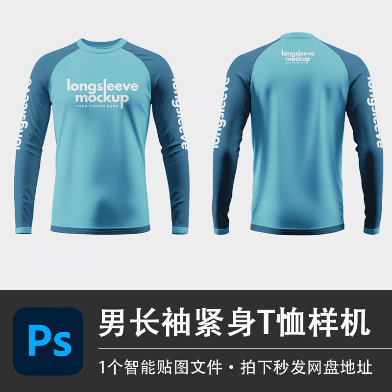男士长袖紧身T恤运动健身速干上衣PSD样机模型智能贴图服装VI素材
