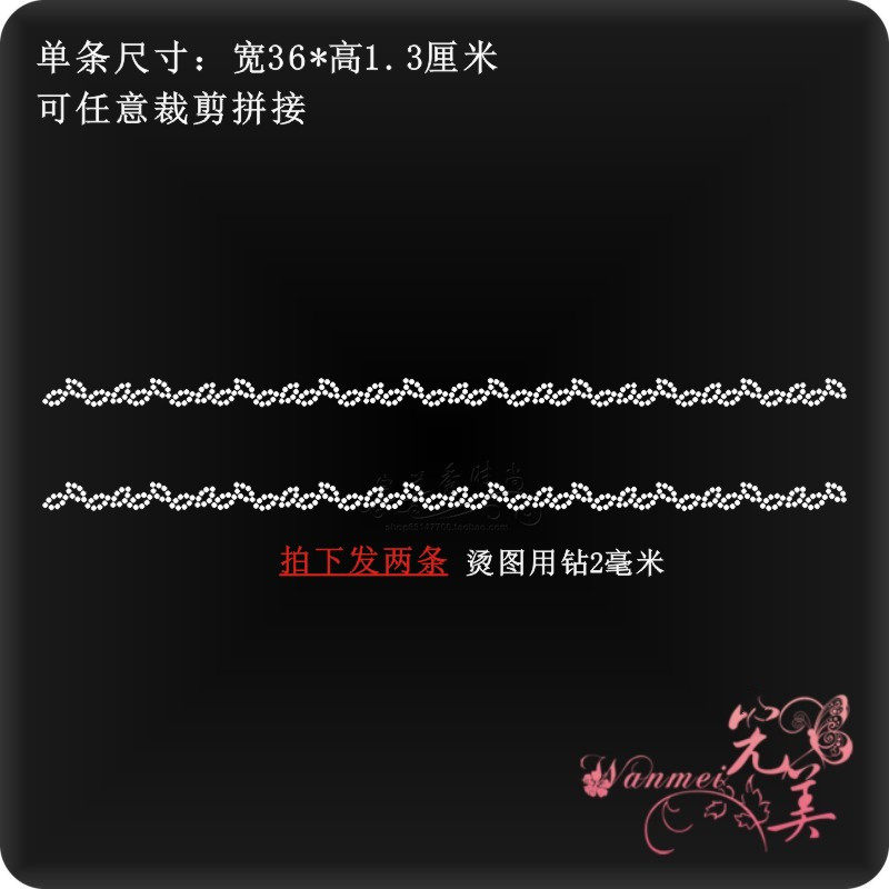 2条花边烫图厂烫钻图案衣服装饰烫钻辅料配件烫画DIY超闪水钻贴图