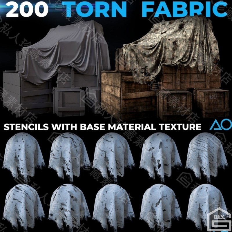 200种布料撕裂做旧破损边缘磨损衣服纹理黑白透明贴图png及教程