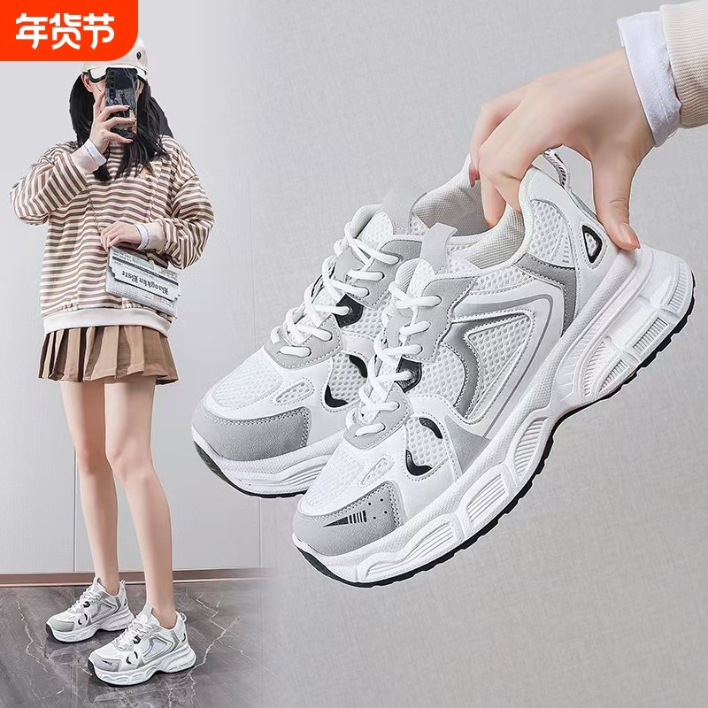 韩版爆款透气运动鞋女2026新款春季厚底跑步鞋百搭显脚小老爹鞋女