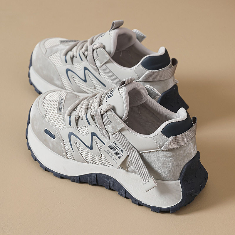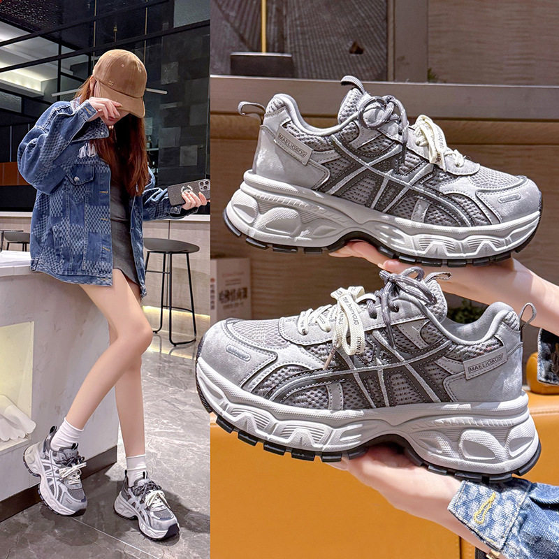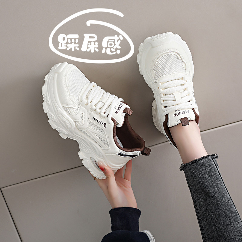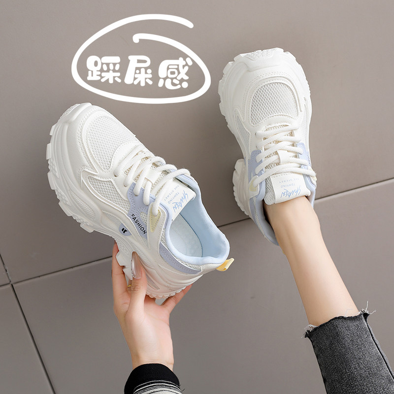米新款~韩版厚底显脚小老爹鞋2026春新款圆头网纱运动休闲跑步鞋