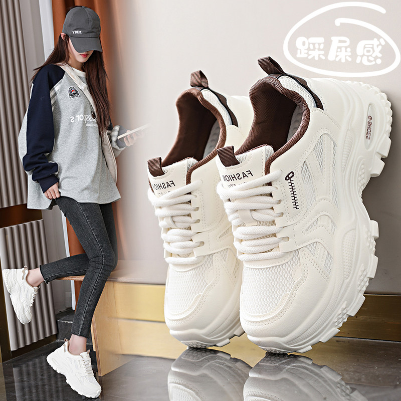 真皮女鞋韩版厚底增高老爹鞋2026春新款网纱跑步运动鞋百搭休闲鞋