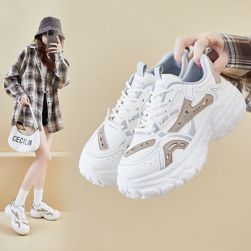 爆款女鞋皮面老爹鞋新款运动鞋厚底韩版舒适休闲鞋轻便百搭跑步鞋