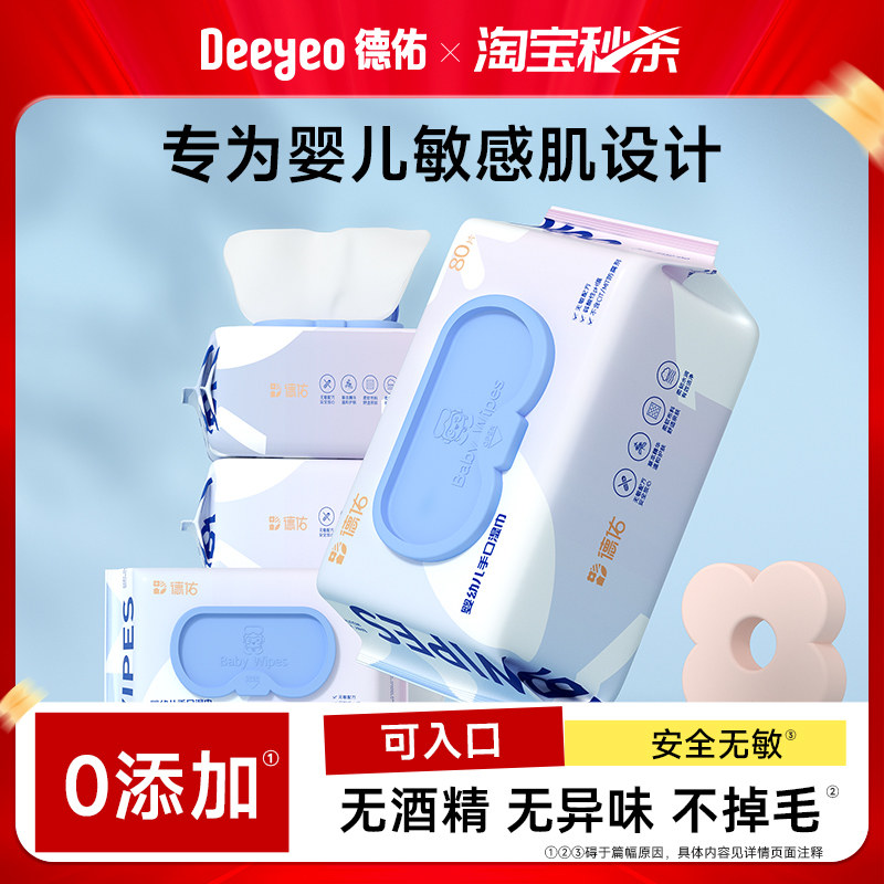 德佑婴儿手口湿巾纸80抽大包湿纸巾宝宝新生儿专用家庭实惠加厚装