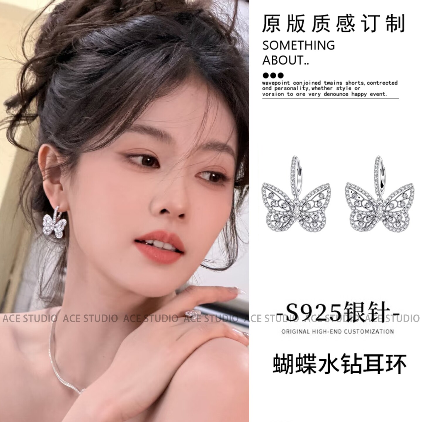 白鹿同款S925蝴蝶水钻耳环女2026新款小众高级感精致个性设计耳钉