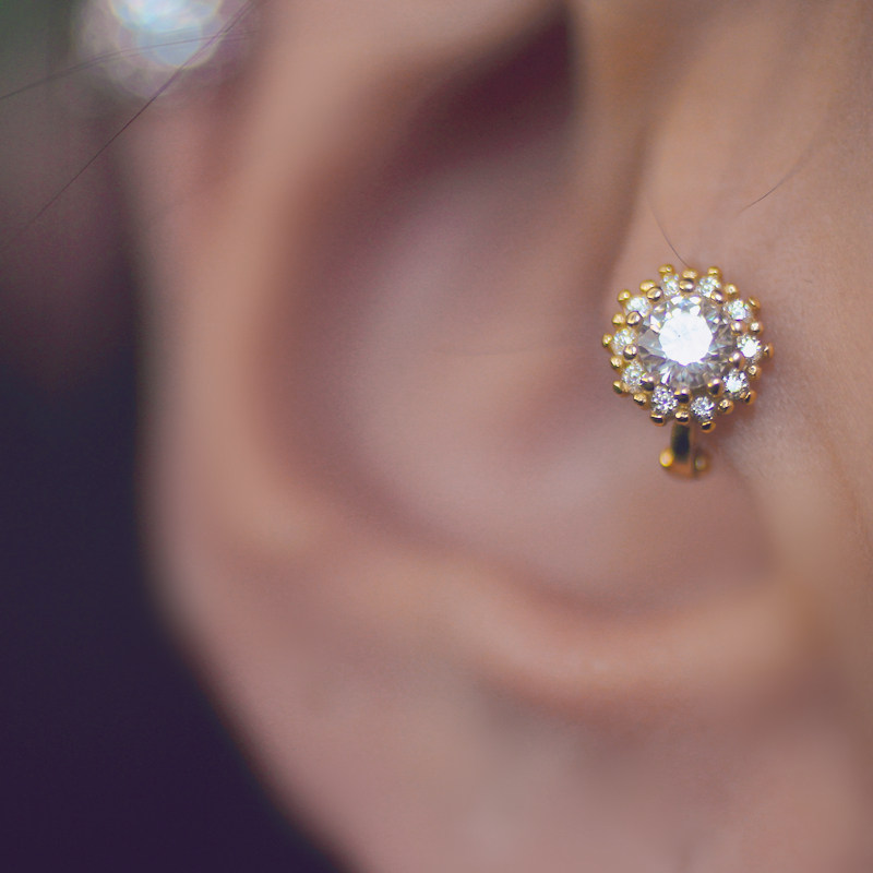 苣闪雪花耳扣迷你耳骨环满天星耳扣水钻花气质925纯银耳饰耳钉女